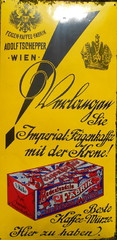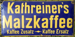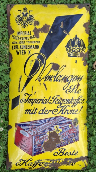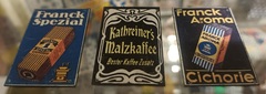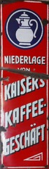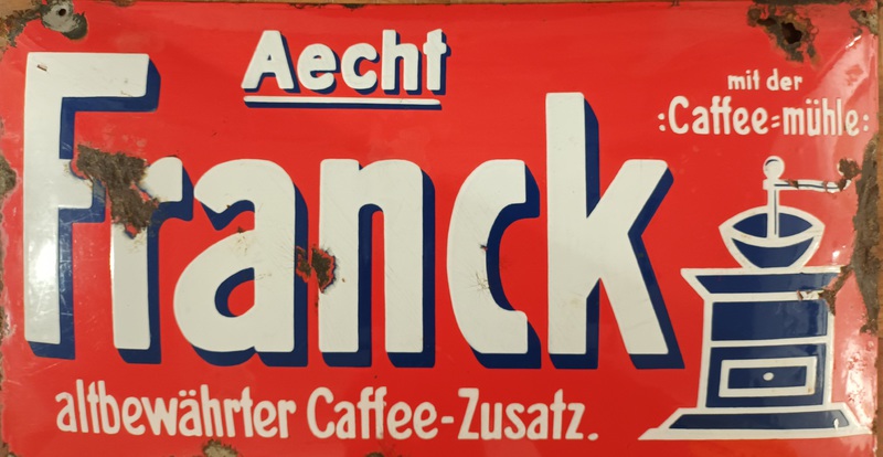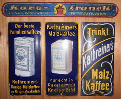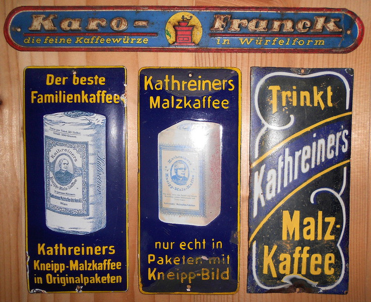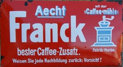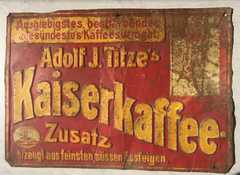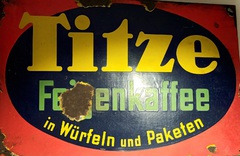 10.10.2014: Nachfolgend ein paar Fotos von meiner Werbeschildersammlung von verschiedenen österreichischen Ersatz-/Zusatzkaffeemarken (Titze, Korona, Franck, Kathreiner ...). Sie sind entweder aus Blech oder Email. Von Linde ist mir nur ein Schild bekannt, das besitze ich leider (noch) nicht. Hier der Link zu einer sehr interessanten und informativen Homepage über alte Schilder (www.emailleschilder.com). Und kürzlich entdeckte ich eine sehr umfangreiche und professionelle Homepage zum Thema Reklameschilder.