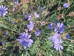 Die wilde Wegwarte wurde zur Edelzichorie hochgezüchtet, die Wurzel wird getrocknet, geschnitten, geröstet und gemahlen und als reiner Zichorienkaffee (z.B. Franck-Kaffee) genossen oder mit anderen Bestandteilen vermischt (z.B. Linde-Kaffee) und getrunken. Es ist unklar, ob die Zichorie Namensgeberin für den "Blümchenkaffee" war oder die Dünnheit des Kaffeeersatzes, durch den man die Blümchen am Boden der Kaffeetasse sah. Siehe Schulschaubild oben.