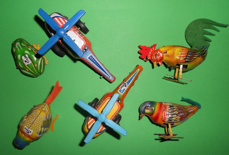 Die 32 Schachfiguren tragen das Pickerl an der Sockelunterseite. Bild 2: die Bakelit-Tierfiguren von Titze mit zarter Kennung am Sockel. Die 12 Sportler mit Pickerl gibt es in weiß, beige, gelblich, ocker, lachsfarben bis rosa und grün. Die selben Motive gibt es von Haribo (Olympia-Serie). Die Steckhunde gibt es in unzähligen, nicht immer rassenkonformen Variationen. Stehauffiguren mit Pickerl sind rar. Pinguin und Pudel. Dann die wohl ältesten Figuren von Titze der Firma Marx: Cowboys, Indianer, Piraten, Disneys mit Heißprägung (siehe Foto) und Toby mit Pickerlrest. Die meisten beschädigt - brüchiges Hartplastik. Zuletzt zur Afrikaserie: Es gibt 8 Figuren, dazu blaues Zubehör (Speer, Pfeile, Trommelschlegel ...). Ob das ganze von der Firma Heinerle erzeugte Zubehör auch für Titze hergestellt wurde, weiß ich nicht, ich besitze lediglich eine Trommel mit Titze-Kennung. Die Figuren selbst zeigen an der Sockeloberseite eine Heißprägung, das Kind ist eine echte Rarität.