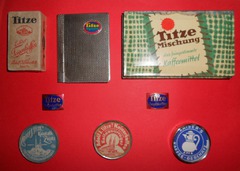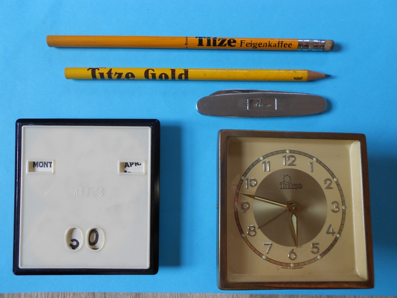 Ich möchte zuerst nur einige wenige Bilder von Titze-Werbebeigaben aus meiner Sammlung präsentieren. Die Fotos zum Vergrößern anklicken. Unten erfolgt die chronologische Darstellung. Ich gehe aber nicht so ins Detail wie bei "Linde". Auf die Darstellung der Papierwerbung verzichte ich weitgehend.