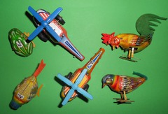 Es gibt vier verschiedene Weichplastikflugzeuge in Rot, Blau, Gelb und Grün. Diese haben eine mitgegossene Kennung an der Flügelunterseite und Plastikachsen.