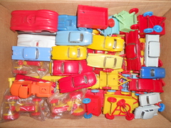 Ein paar Beispiele für den Variantenreichtum bei den Titze-Autos. Hartplastikautos mit Metallachsen, zum Beispiel der Hartplastikmercedes in Schwarz mit Rädervarianten. Titze-Tankwagen mit Pickerl (Firma Göso) bzw. Kennung (Roco). Göso Autos mit Pickerl in zwei Varianten (Fahrerkabine). Zuletzt Hart- und Weichplastikfahrzeuge mit verschiedenen Kennungen (gegossen, gebrannt). Besonders selten die Rennautos - fünfte Reihe. Erstes Foto sechste Reihe: große Weichplastikautos mit Heißprägung. Roco-Autos mit Titze-Prägung. Und zuletzt Originalpackungen von Göso- und Roco-Autos.